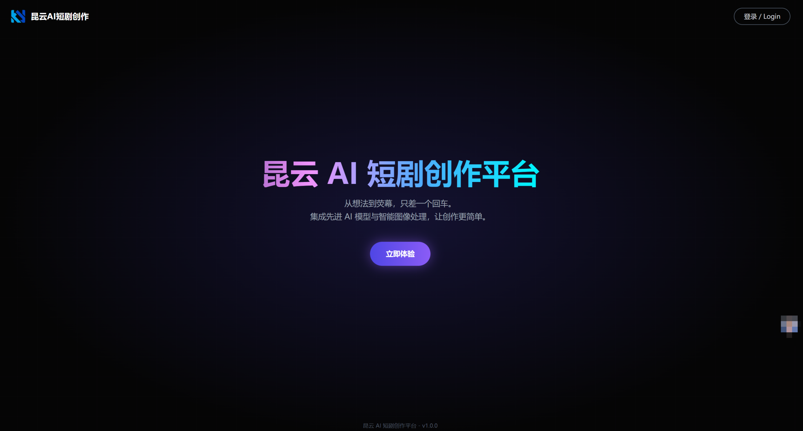 昆云 AI 短剧创作平台是一站式 AI 短剧 / 漫剧智能创作平台,实现创意到成片几分钟快速落地。平台支持 24 种短剧画风,支持自主上传剧本创作,可自动生成剧本分集、带动态视频的角色,智能制作场景与分镜头,还能一键添加配音和 BGM,适配多集连续剧创作与成片一键合成。单集制作成本仅20元左右元,较传统制作省 90% 以上,无需摄像与演员,制作质量媲美专业团队,全程简易操作,小白也能快速上手。